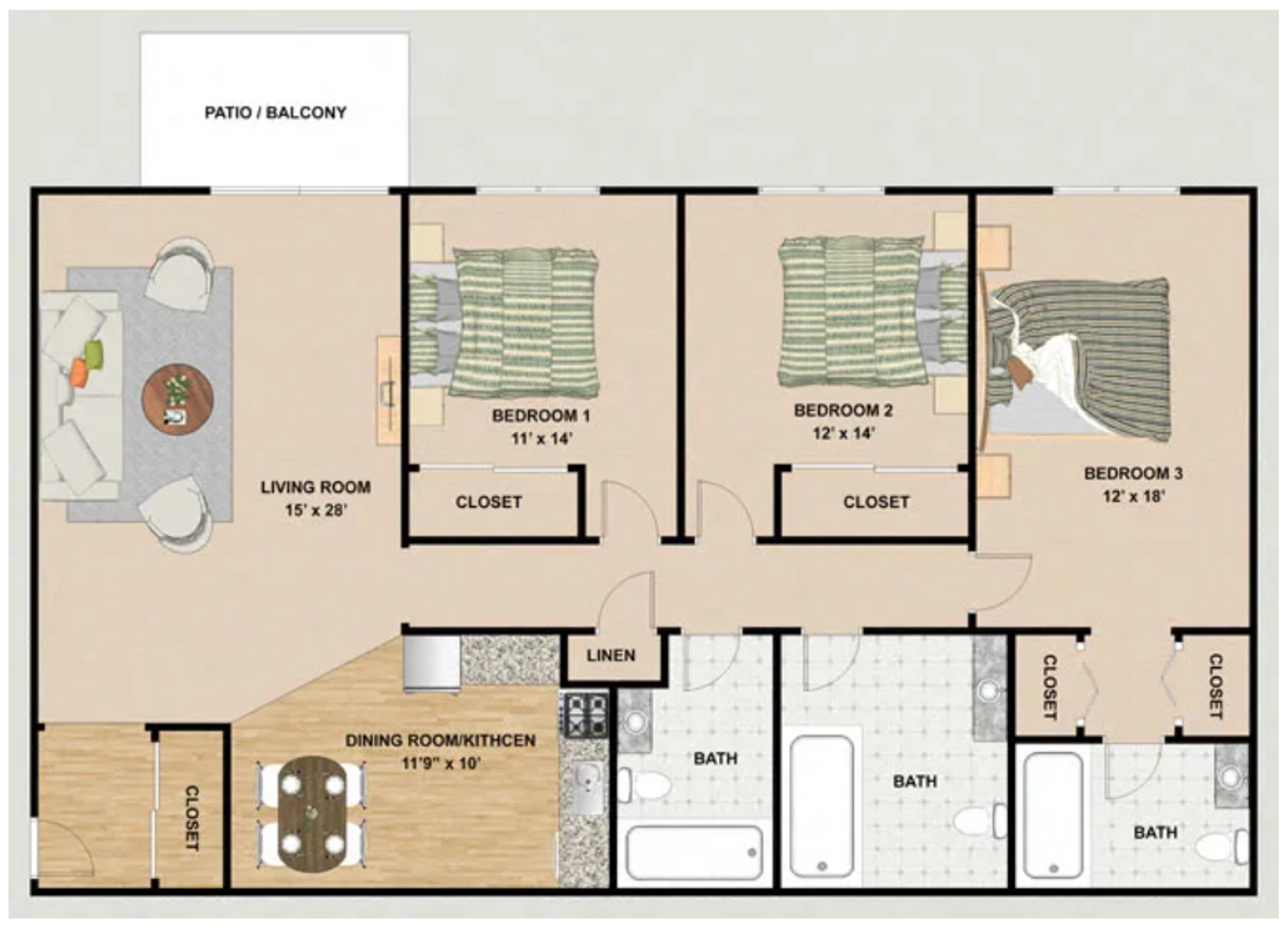 Retreat to the serene bedrooms, each designed to be a sanctuary of tranquility. With generous floor plans, plush carpeting, and abundant closet space, these bedrooms offer the ideal space to unwind and rejuvenate after a long day.