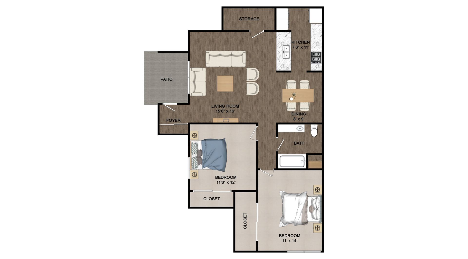 Enjoy the private drive into the Stonewood Village community, where your new home awaits. Stonewood Village Apartments is situated on Madison’s East Side: close to shopping, food, public transportation, and nature. Your new two-bedroom home features your choice of classic or remodeled options (based on availability). Our remodeled options offer luxury plank flooring, plush carpeting, new countertops, and stainless-steel fridge, stove, and dishwasher. Looking for a bit more luxury? Our Deluxe option includes all the features of the remodeled, in addition to brand new bathroom and kitchen cabinets, as well as new front load laundry machines. Lastly, the Classic style apartments feature carpeting throughout, along with clean white appliances in the kitchen area. Enjoy the extra convenience of ample storage, private entry doors, a private patio, and your very own laundry with in home washer and dryer. Did we mention the outdoor pool? We have that too.